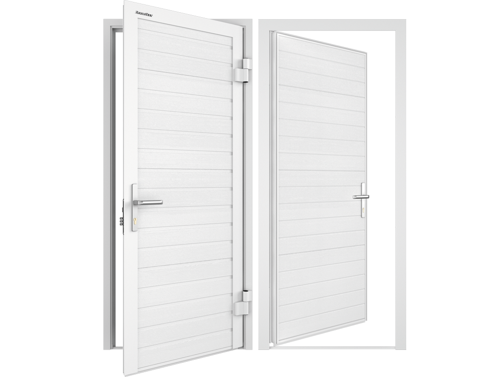 Двери могут изготавливаться с открыванием в левую или правую сторону, наружу либо внутрь помещения. Высота порога составляет 8 мм, что обеспечивает удобство при эксплуатации двери.