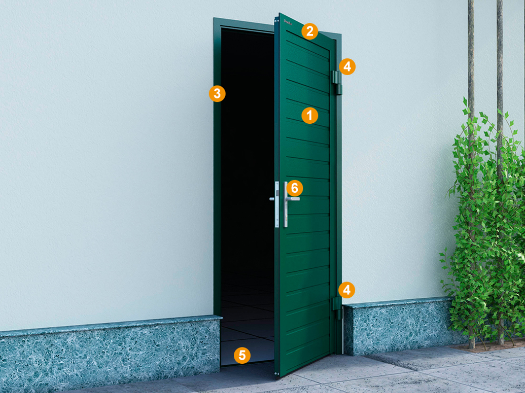- Алюминиевые профили дверной коробки обеспечивают устойчивость конструкции и защиту от коррозии.
