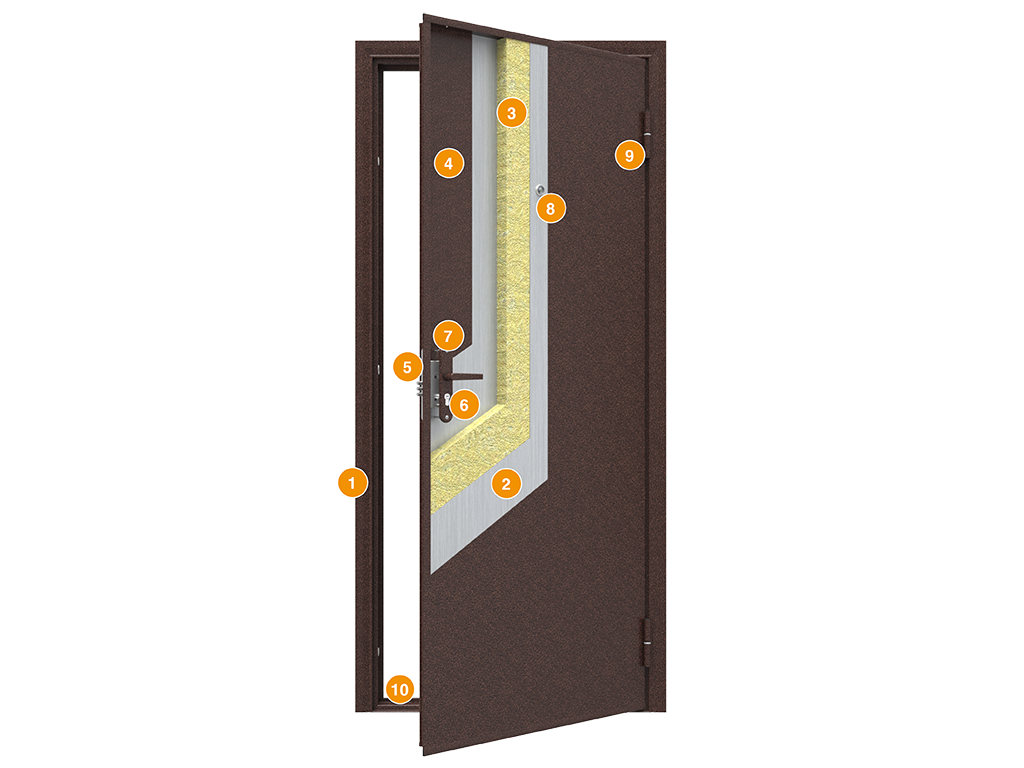 Используется один контур самоклеящегося уплотнителя D-образной формы из EPDM, который сохраняет заданную геометрию и эластичность при длительных эксплуатационных нагрузках. Дверь предназначена для установки в жилых, общественных и коммерческих зданиях.